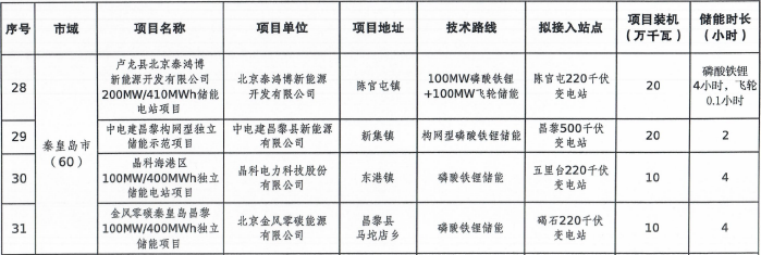 《河北省2025年独立储能项目清单》-部分公示内容